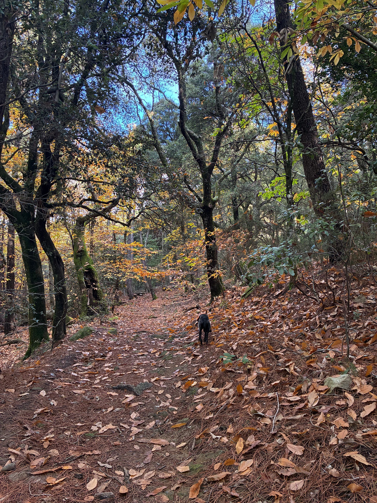 The forest itself was a revelation. Chestnut groves, ridgelines sweeping open, and the comforting knowledge that several springs were marked on my map. Only one was running, as it turned out. But I was lucky: the functioning fountain sat just below the monastery.