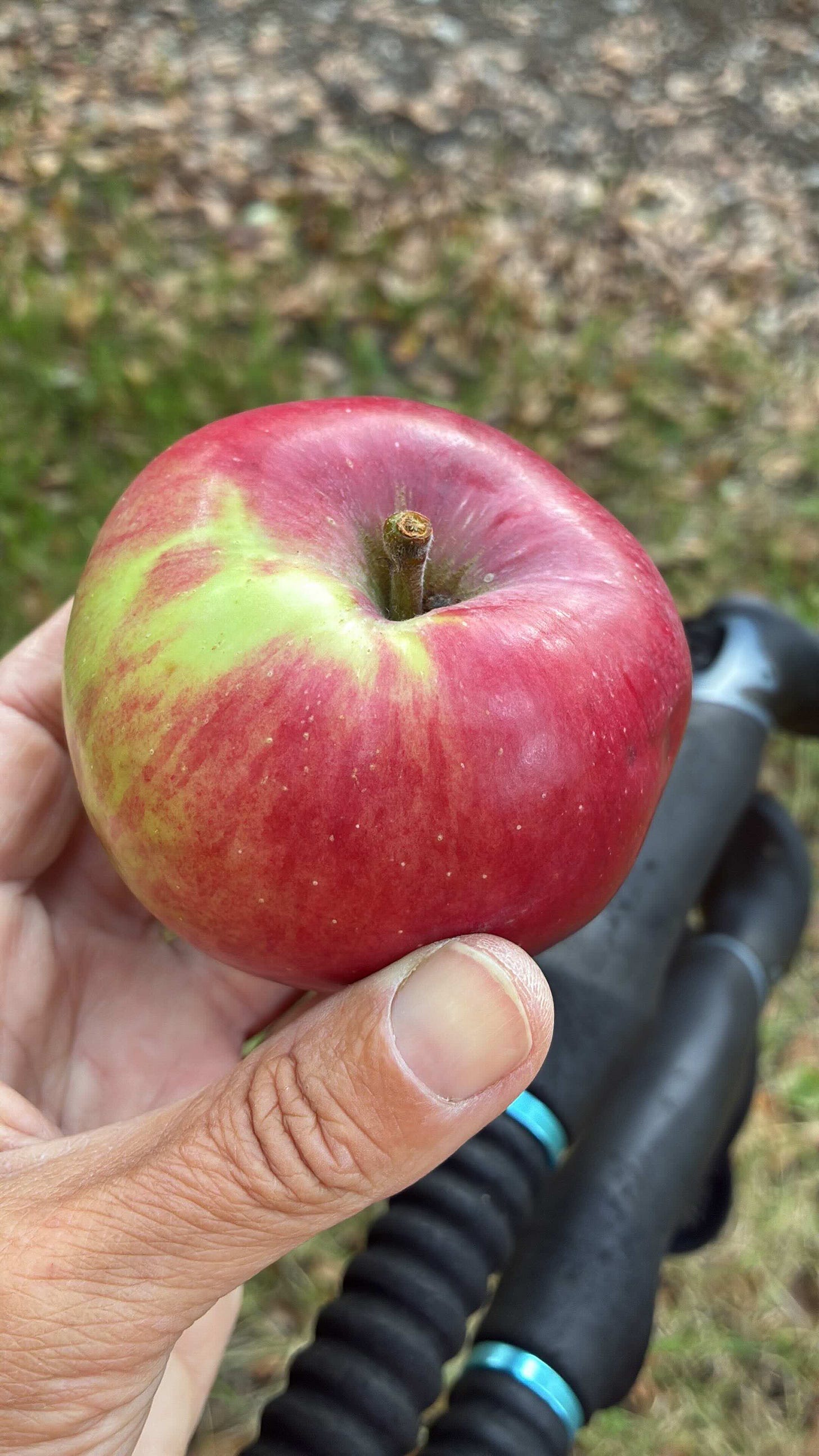 Diverting off the cycle track, I wandered down into the village where I’d planned to spend the night wild camping. The walk down was unexpectedly enchanting. I passed a sweet fountain, a series of fishing lakes, mirror-still in the late afternoon, and an orchard so full of apples it felt like something out of a storybook. There were hundreds of varieties, each labelled, and I laughed out loud to find one called gros cul or fat bottom. I pocketed a very red, fat-bottomed variety and carried on into town.